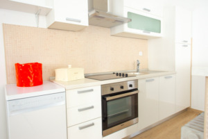 Our well-equipped apartment features a microwave, refrigerator, dishwasher, kettle, and induction stove for your convenience.