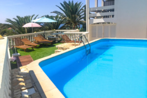 Naše utočište vas poziva da doživite miran bijeg s 8 promišljeno dizajniranih apartmana, uključujući luksuzni penthouse za do četiri osobe. Okružen slikovitim, prostranim vrtom s prekrasnim kamenim stolovima, idealno je mjesto za uživanje u gozbi s roštiljem. Za sve naše goste bazen je na raspolaganju od 9 do 20 sati.