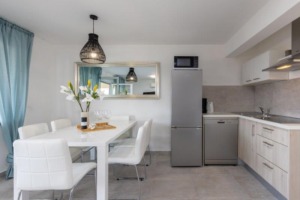 U svojoj potpuno opremljenoj kuhinji pripremajte ukusne obroke i okupljajte se u dnevnom boravku za zajedničke trenutke sreće. Dvije kupaonice, zajedno s tuševima i perilicama rublja, dodaju dašak udobnosti vašem boravku, osiguravajući da vaše vrijeme u Villi Dubravka bude istovremeno uživajuće i bezbrižno.